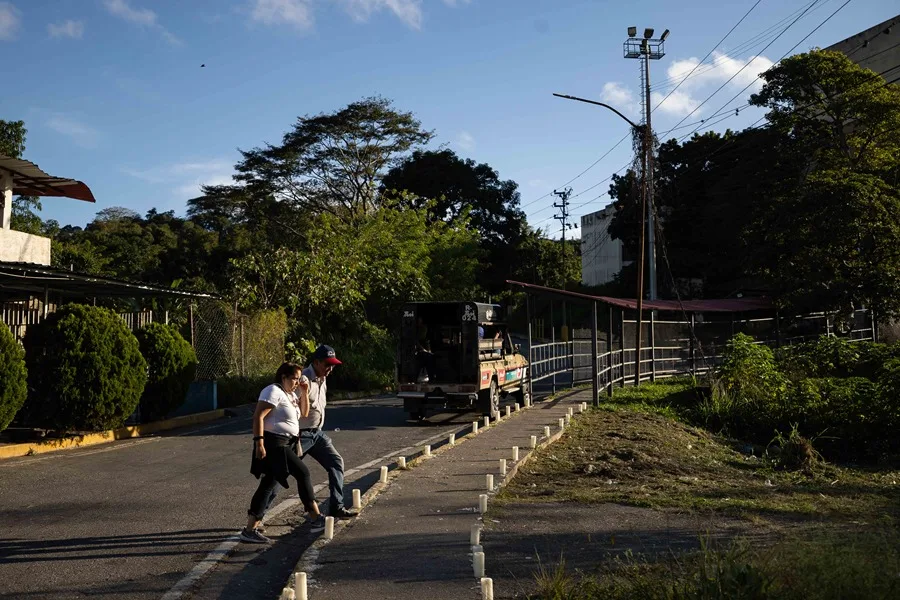 Dos personas caminan frente al centro penitenciario Rodeo en Zamora, Venezuela, el 13 de enero de 2026. EFE/ Ronald Peña R.
