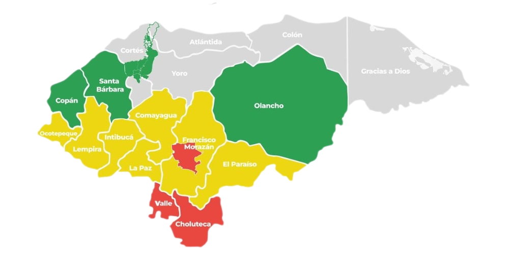 De manera preventiva, también se ha ampliado la Alerta Amarilla para los departamentos de Comayagua, La Paz, Intibucá, Lempira, Ocotepeque, El Paraíso y el resto del territorio de Francisco Morazán.
