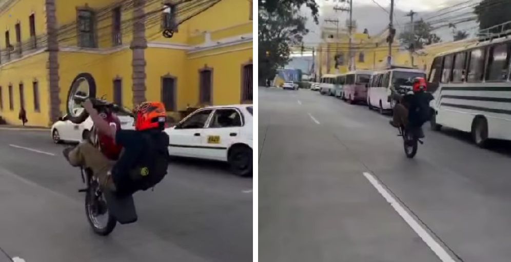 En el video, que se viralizó rápidamente en redes sociales, se observa al conductor desplazándose en una sola rueda mientras otros vehículos circulan muy cerca, poniendo en riesgo su vida y la de los demás.