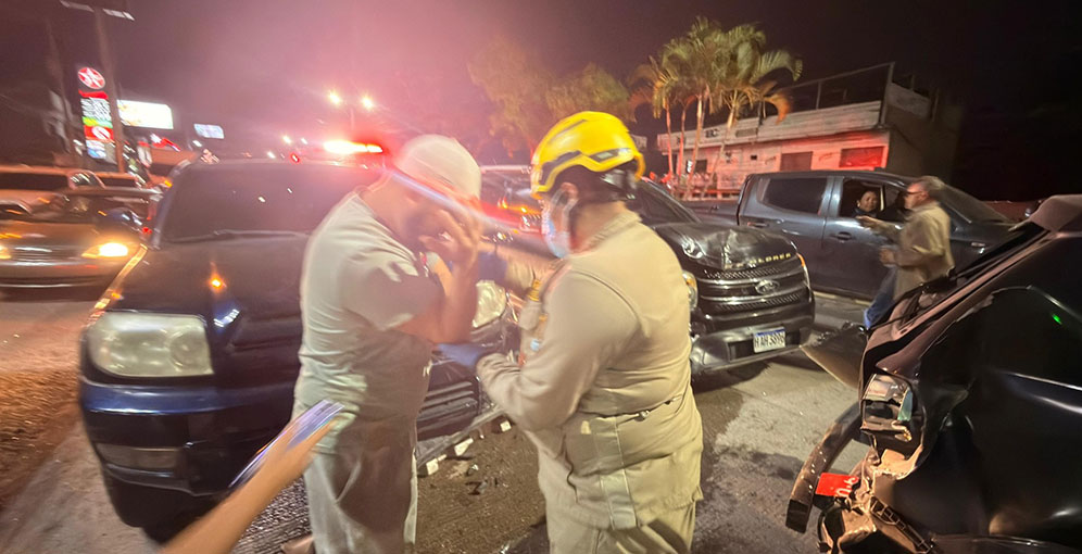 El Cuerpo de Bomberos de Santa Rosa de Copán informó anoche, sobre un accidente de tránsito tipo colisión múltiple ocurrido en el bulevar Suazo Córdova, frente al restaurante “Típicos El Glotón”.