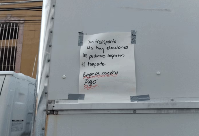 Los conductores portaban pancartas con mensajes como: “El voto fue secreto, la falta de pago es pública”, “Queremos que nos paguen” y “Basta de jugar con el sudor del pueblo”.