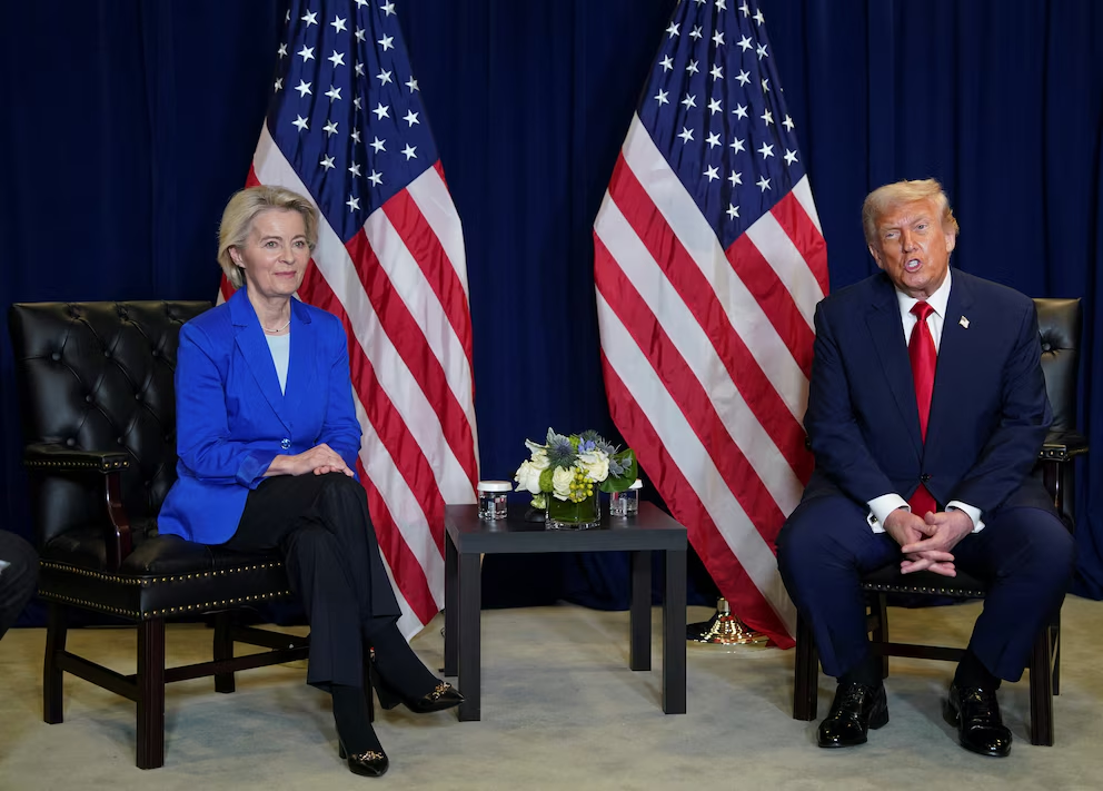 La presidenta de la Comisión Europea, Ursula von der Leyen, se reúne con el presidente de Estados Unidos, Donald Trump, durante la 80.ª Asamblea General de las Naciones Unidas. REUTERS/Al Drago